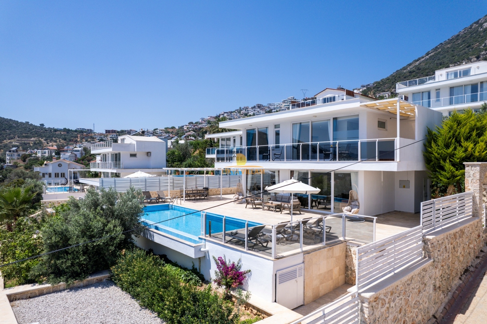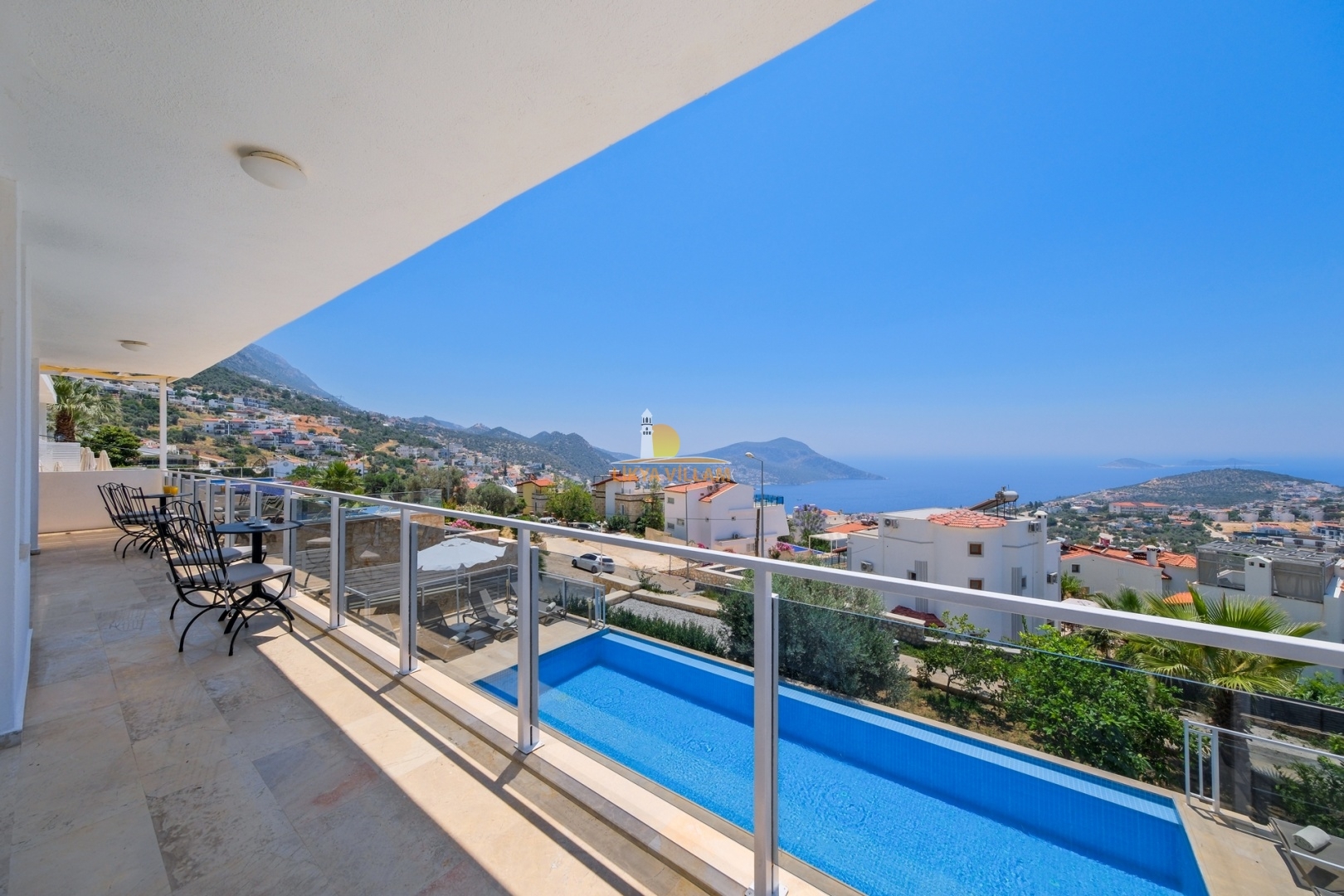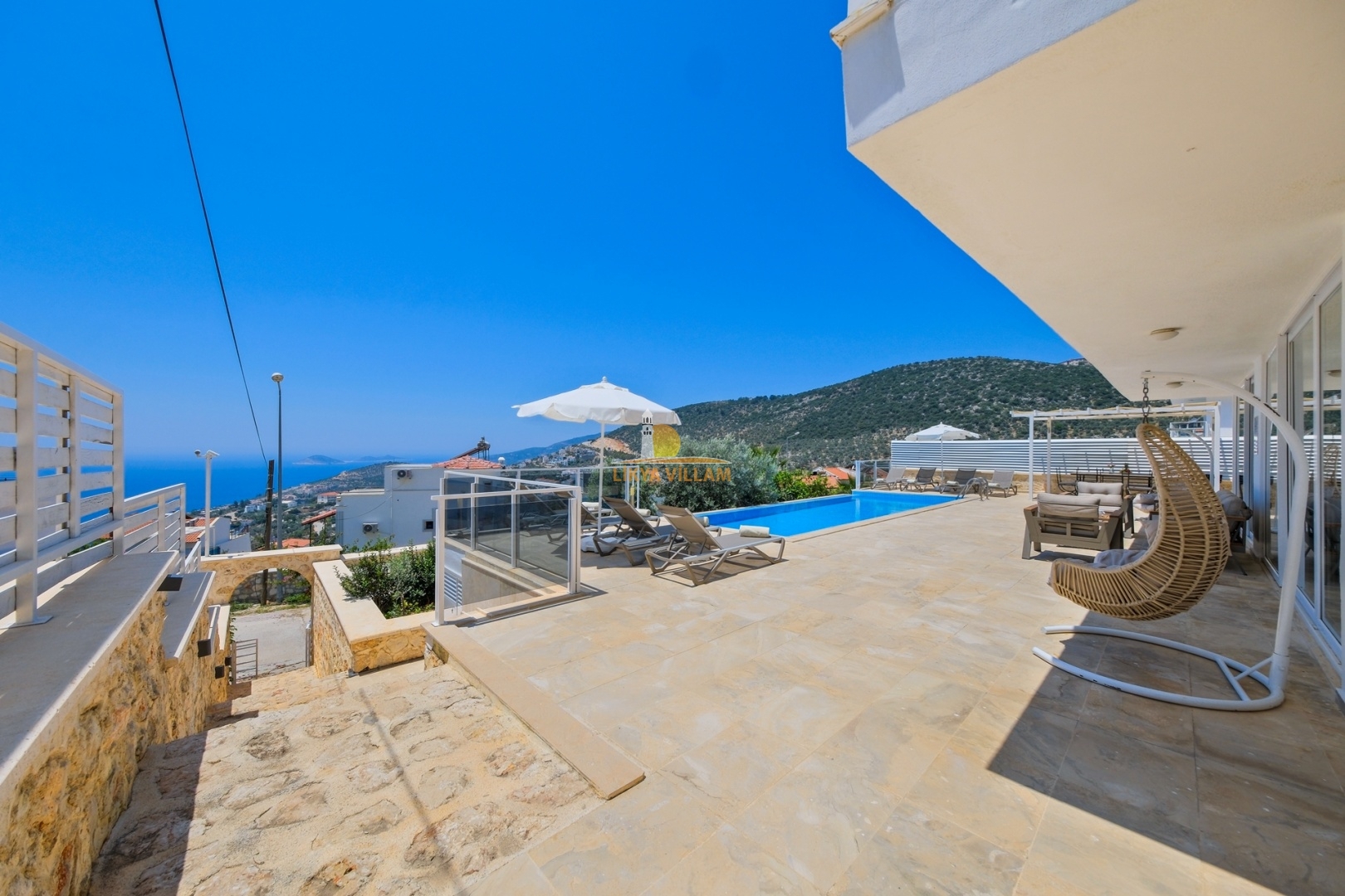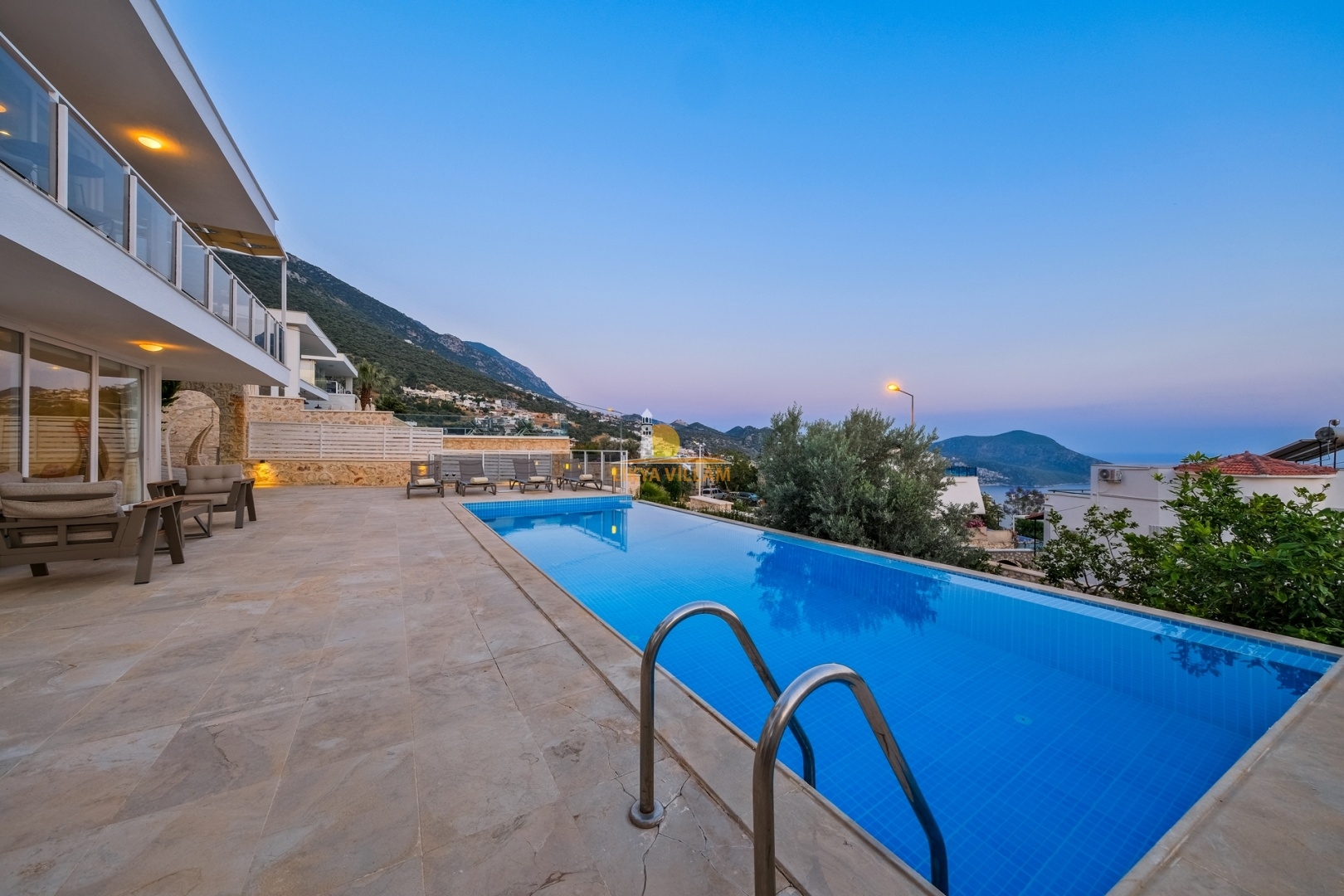 Villa in Kalkan mit Meerblick, beheizter privater Pool, 4 Schlafzimmer, 4 Bäder, Whirlpool, 2 Etagen