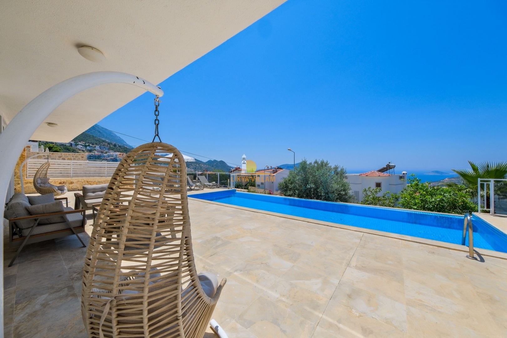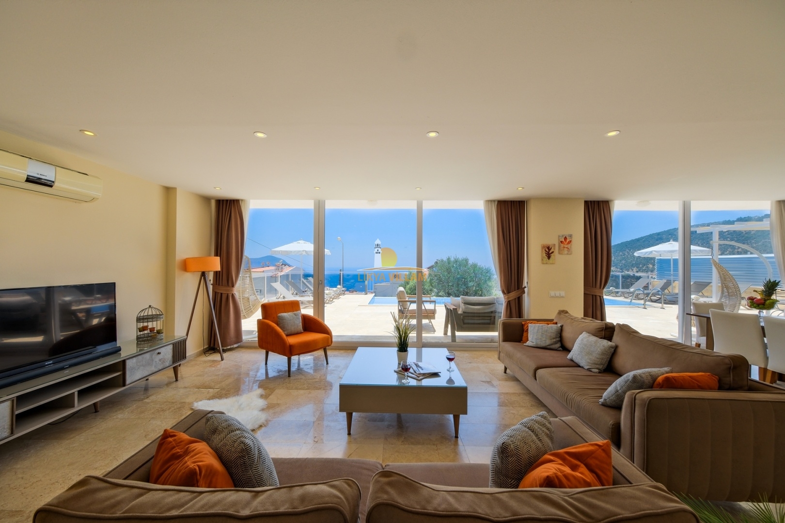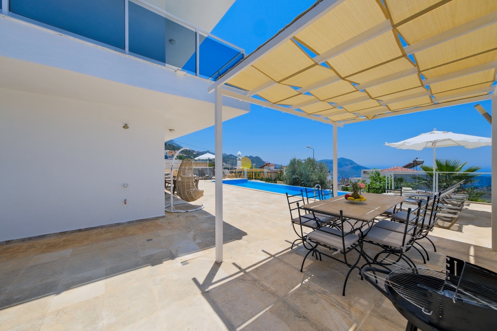 Villa in Kalkan mit Meerblick, beheizter privater Pool, 4 Schlafzimmer, 4 Bäder, Whirlpool, 2 Etagen