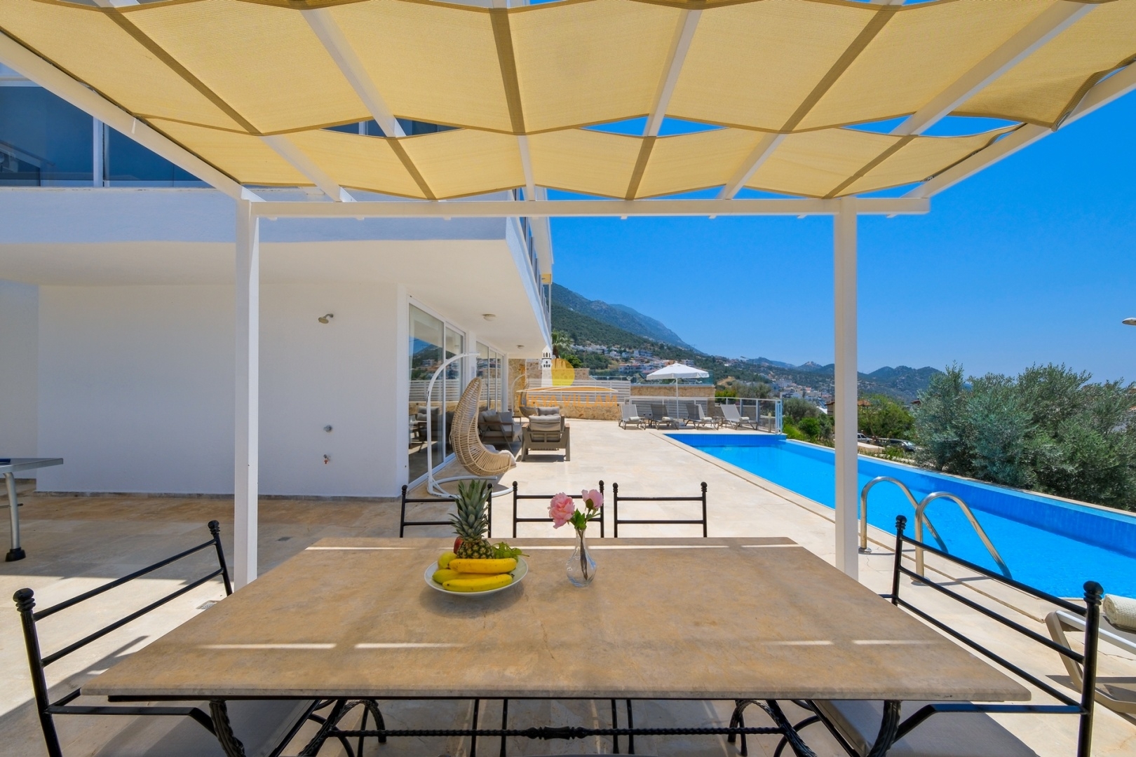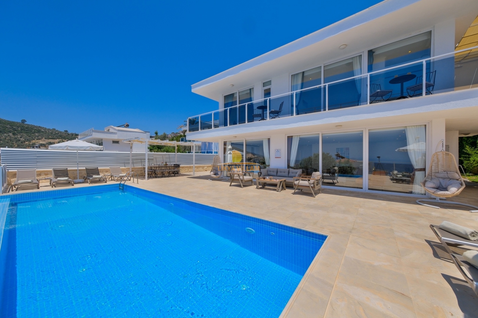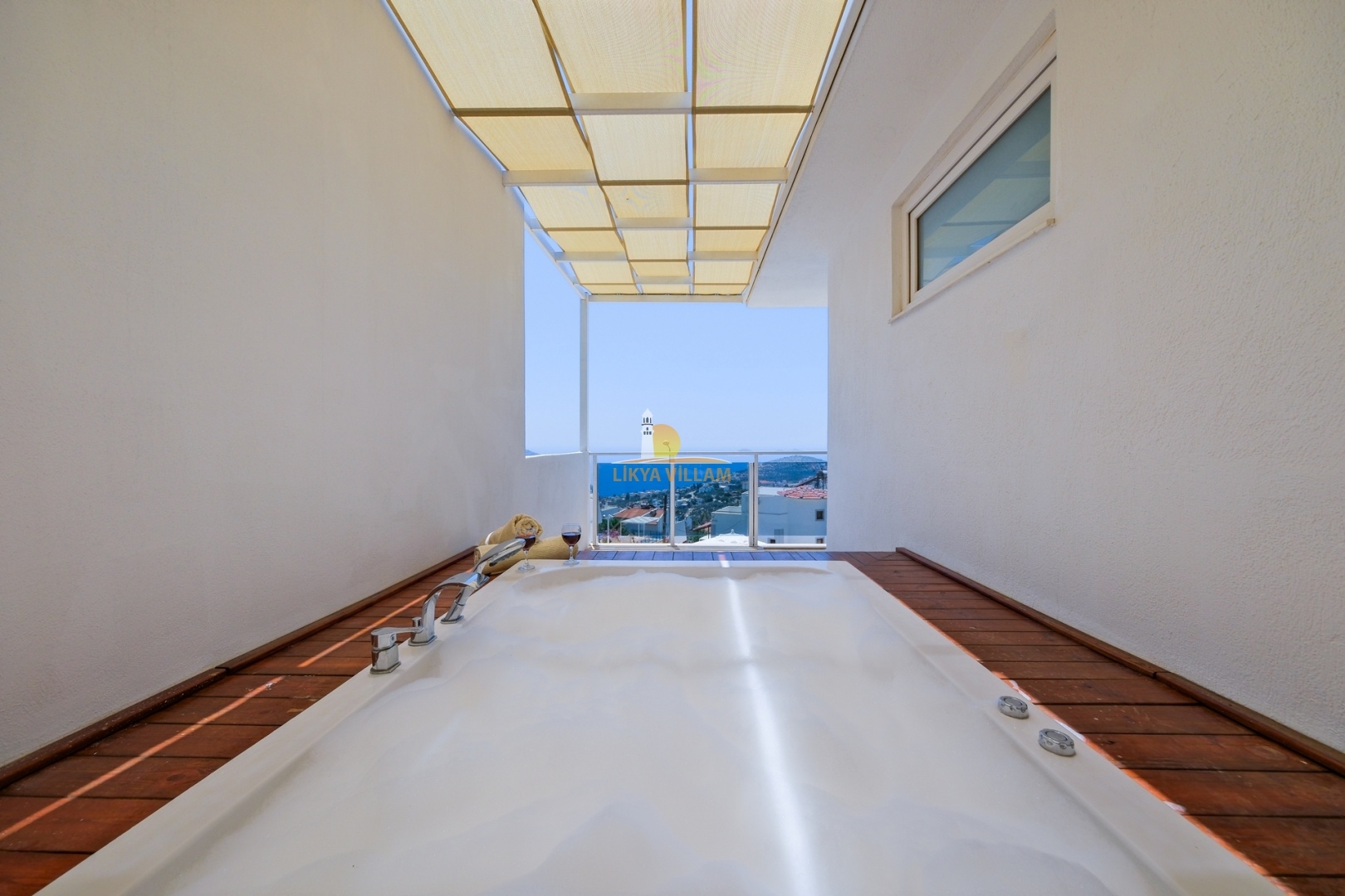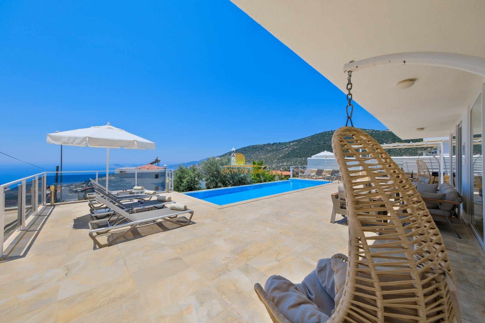 Villa in Kalkan mit Meerblick, beheizter privater Pool, 4 Schlafzimmer, 4 Bäder, Whirlpool, 2 Etagen