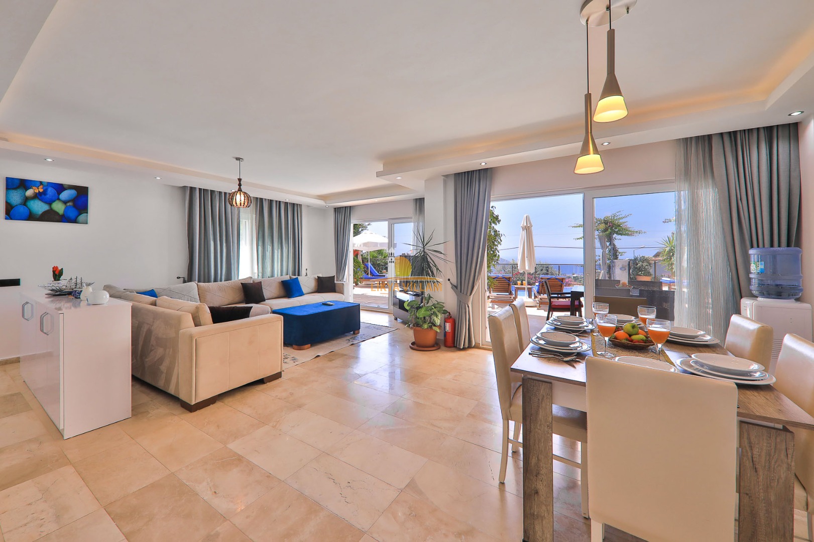 Villa in Kalkan mit Meerblick , privater Pool, 3 Schlafzimmer, 3 Bäder, Whirlpool, 3 Etagen, zentral