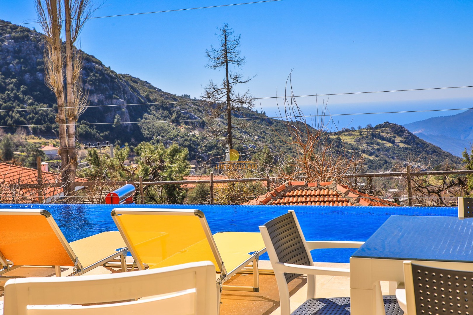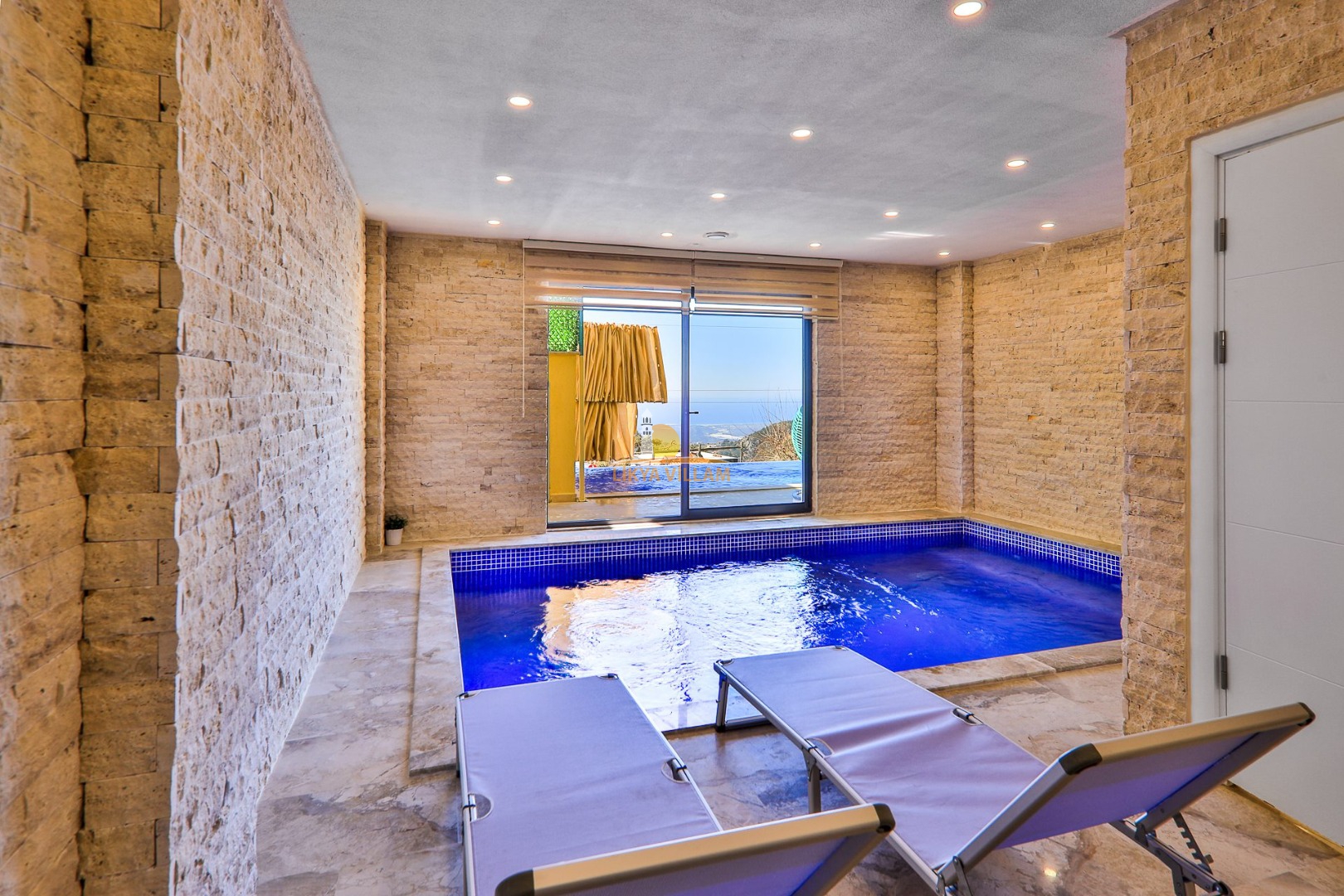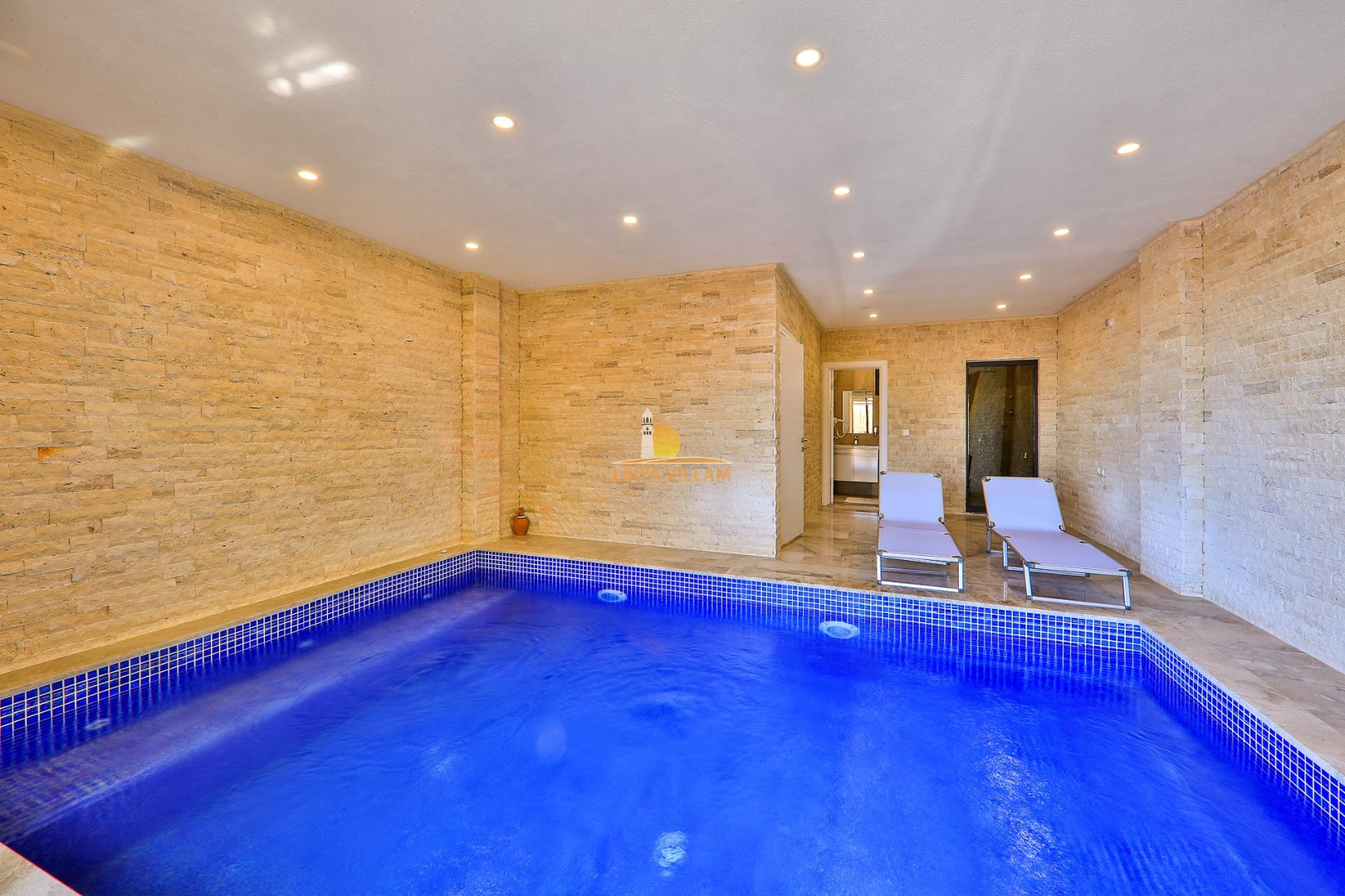 Villa in Kalkan mit Meerblick, privater Pool, 4 Schlafzimmer, 4 Bäder, Innenpool, Sauna, 3 Etagen