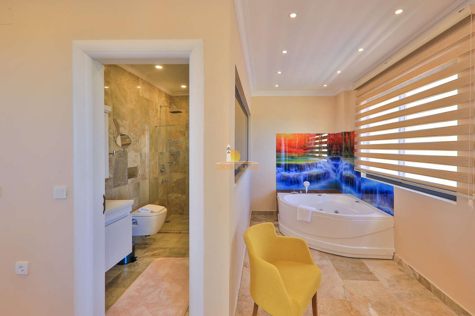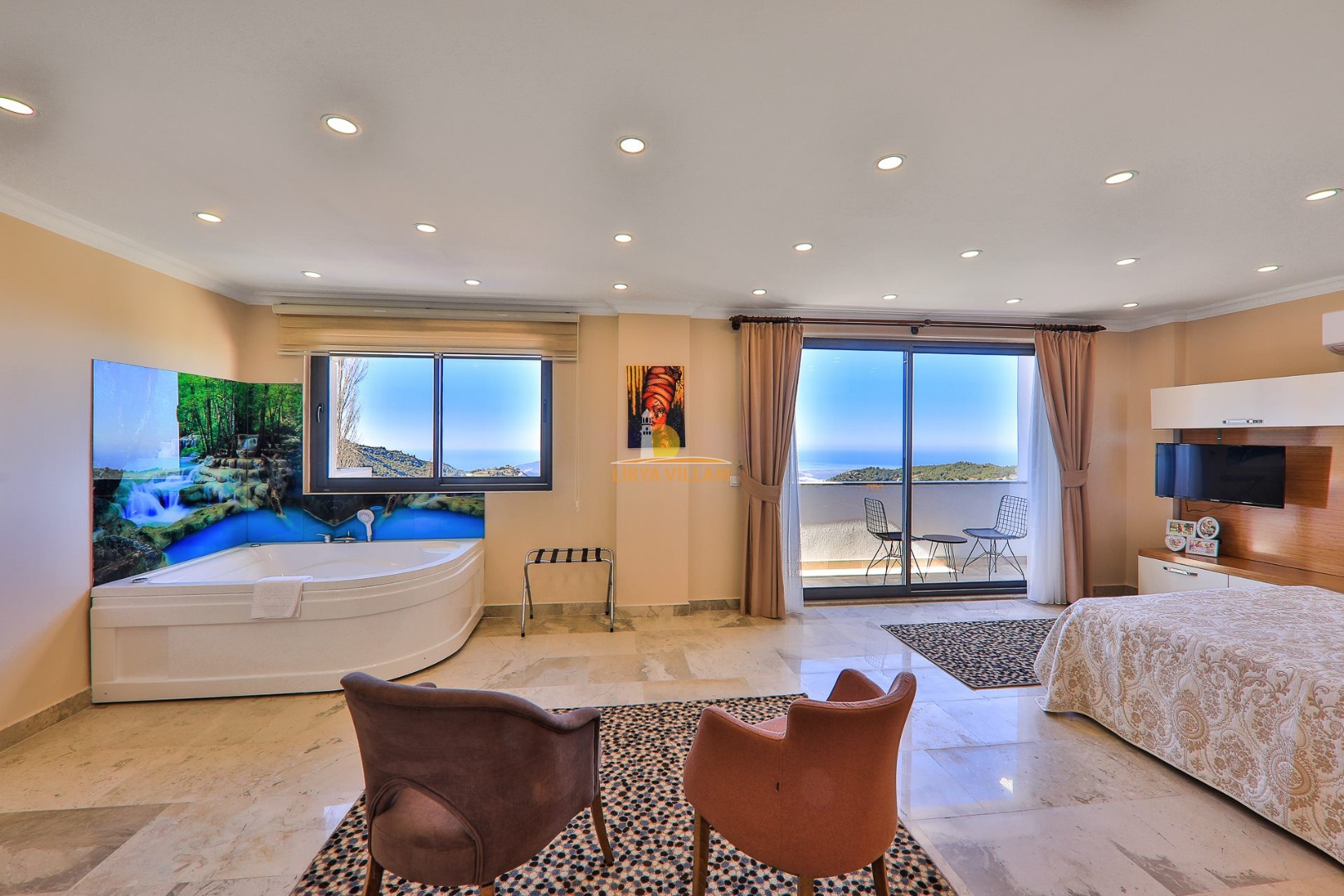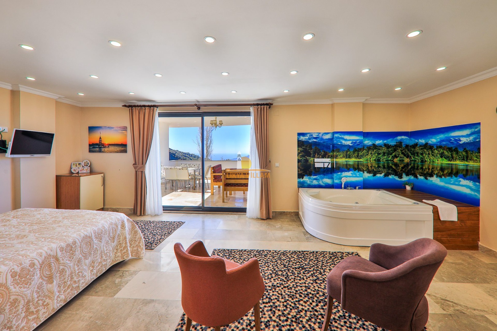 Villa in Kalkan mit Meerblick, privater Pool, 4 Schlafzimmer, 4 Bäder, Innenpool, Sauna, 3 Etagen