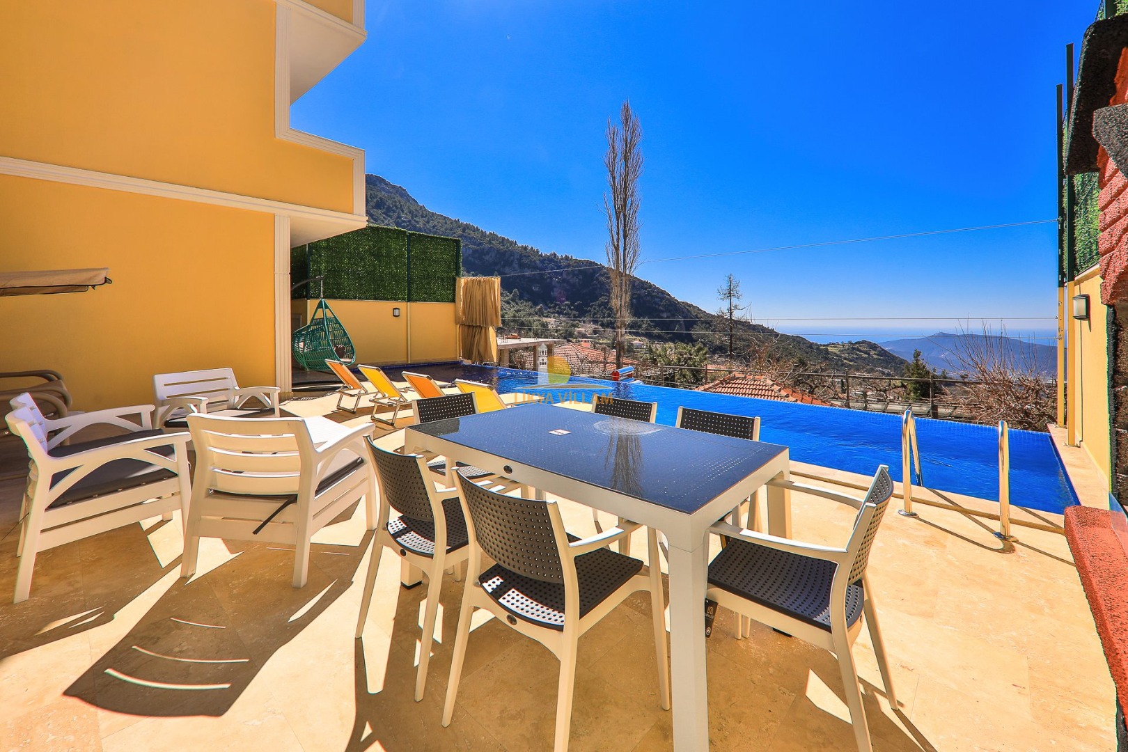 Die Villa liegt im Dorf Islamlar / Kalkan und bietet mit 4 Schlafzimmern Platz für 10 Personen. Aufgrund des geschützten Pools und der Sonnenterrasse, ist es eine ideale Option Familien und Gruppen von Freunden. Sie ist für Gäste gedacht, die einen ruhigen Urlaub, inmitten der Natur verbringen möchten. Darüber hinaus, hat die Villa ein türkisches Bad, Sauna, Hallenbad, Tischtennis, Sportgeräte sowie ein beheiztes Hallenbad.