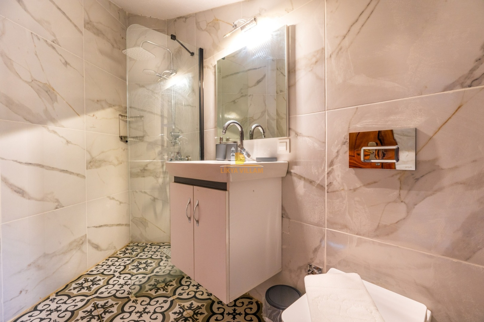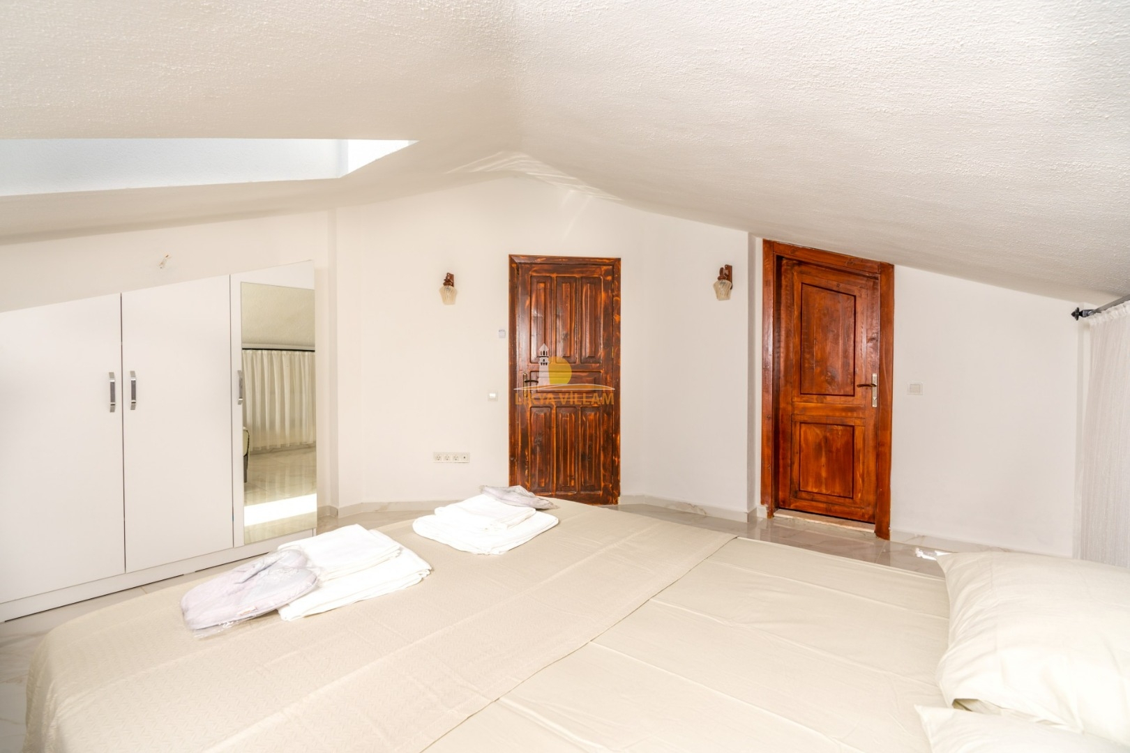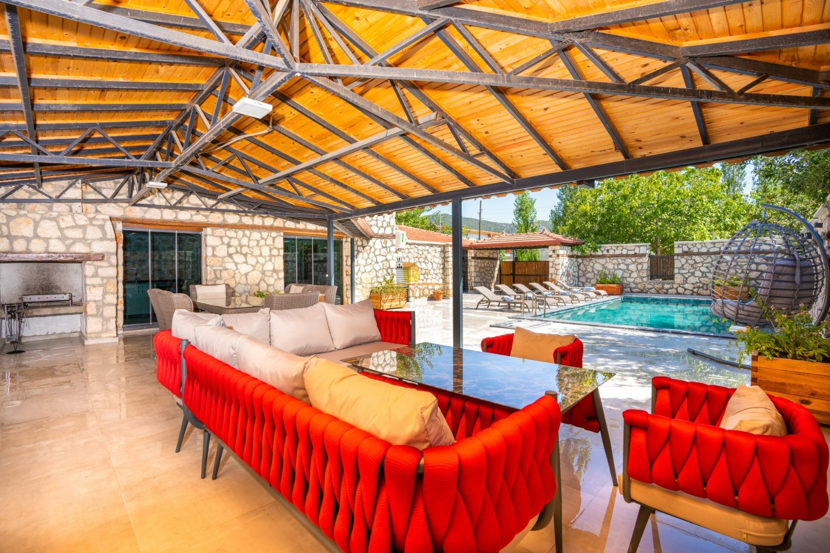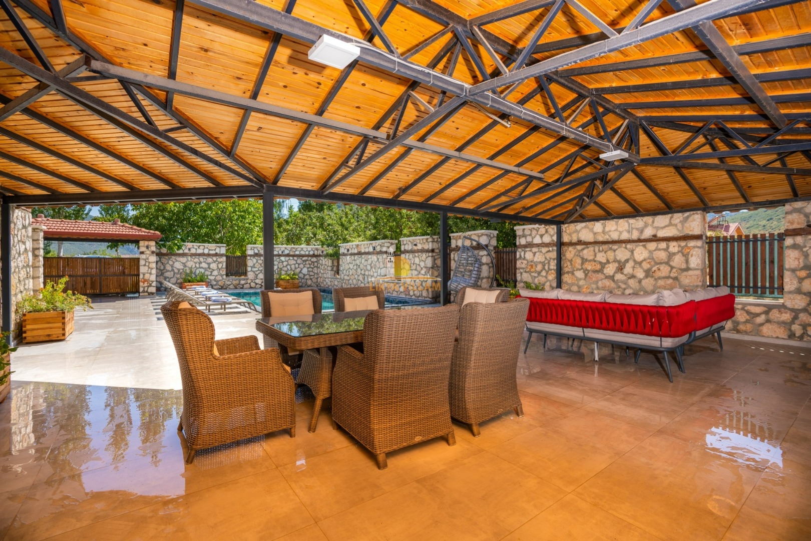 Steinvilla auf 3 Etagen mit 2 Wohnzimmern und 2 Küchen in authentischem Design in Kas / Bezirgan . Mit 3 Schlafzimmern bietet die Villa Platz für 6 Personen.
