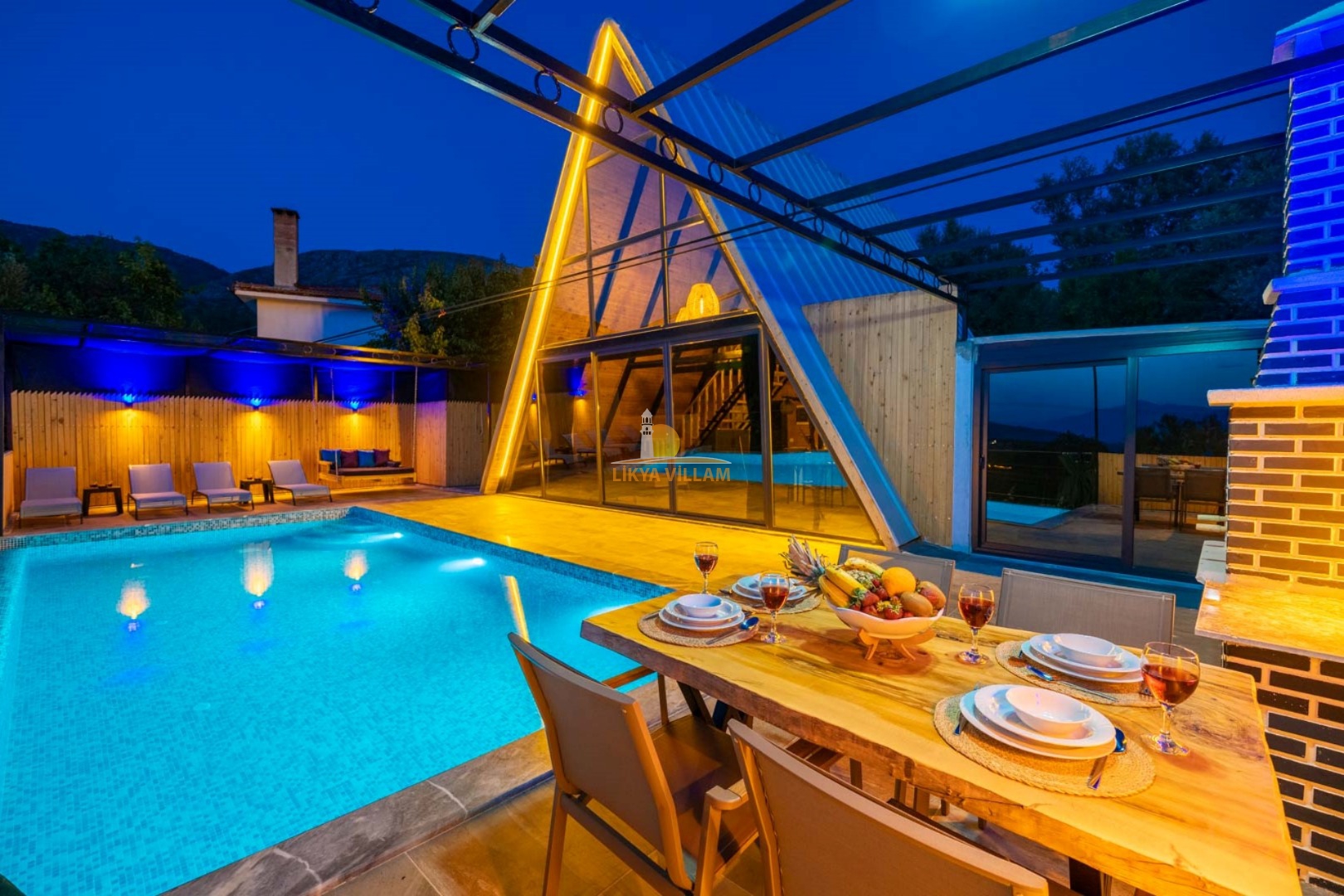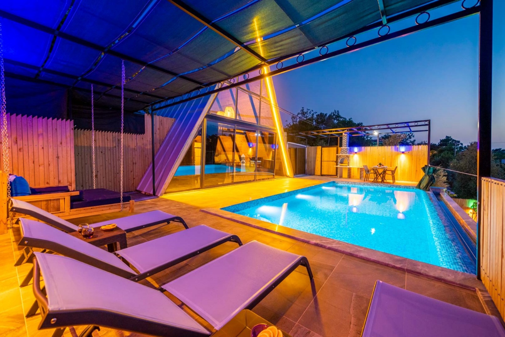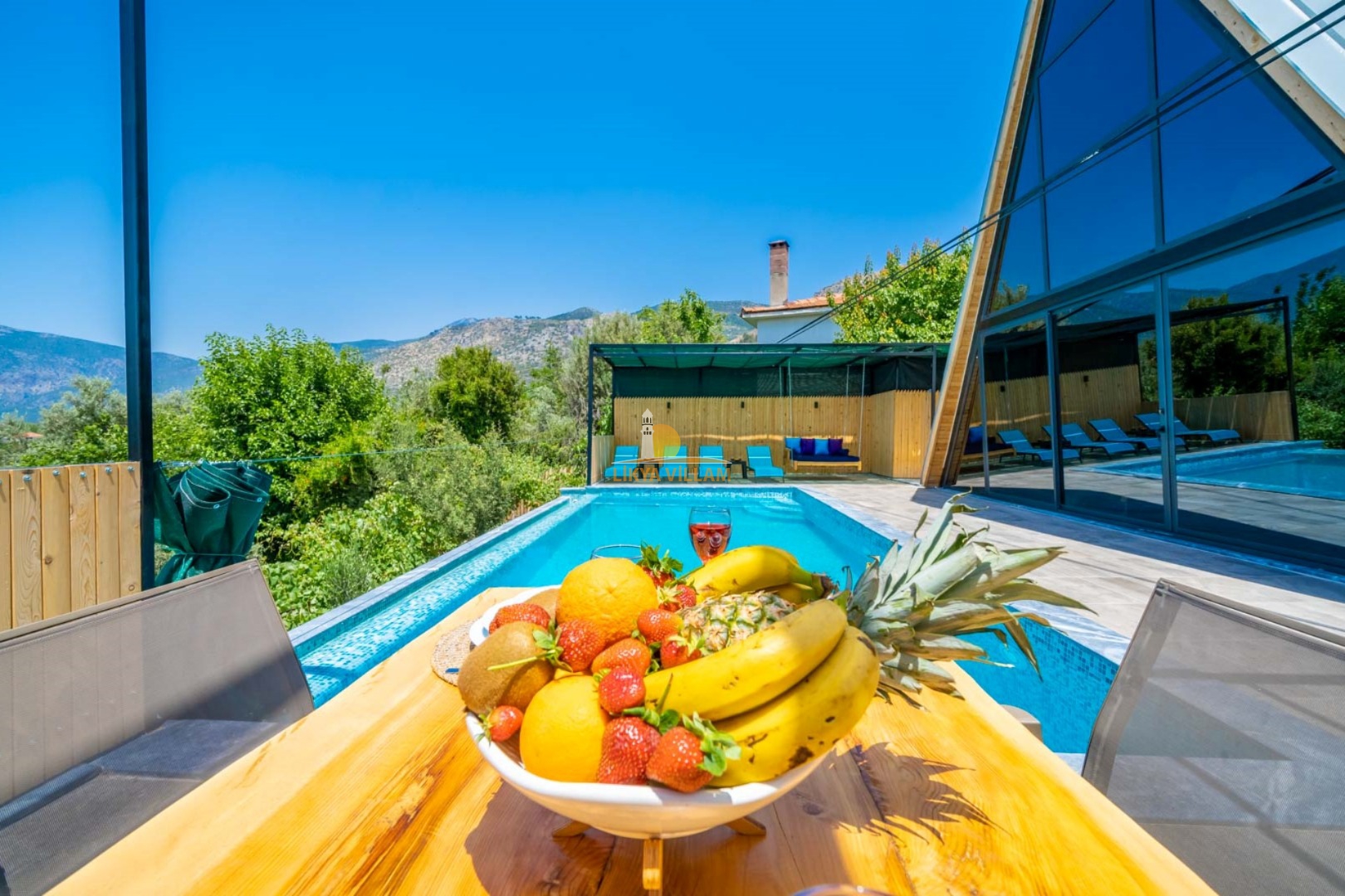 Villa oberhalb Kalkan, privater Pool, 1 Schlafzimmer, 1 Bad, Whirlpool, Sauna, ideal für 2 Personen